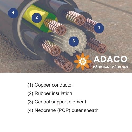 | Vỏ bọc bên ngoài | Polychloroprene (Neoprene) |