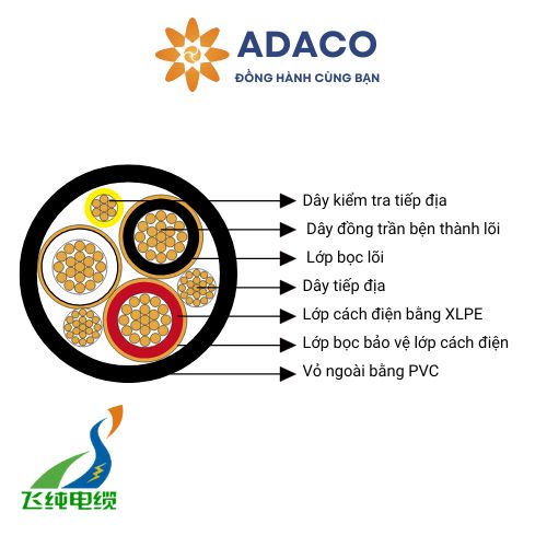 | Lớp cách nhiệt và điện | Cross-Linked Polyethylene (XLPE) |