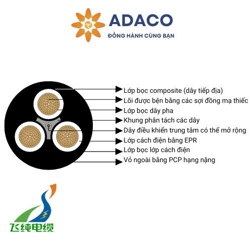 | Vỏ ngoài | Vỏ bọc bằng PCP hạng nặng. Lớp bọc CPE hoặc CSP hạng nặng cũng có thể được thiết kế thay thế theo yêu cầu. |