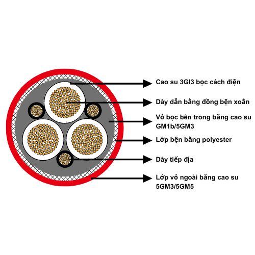 Cấu tạo cơ bản của cáp điện (N)TSCGEWÖU dùng cho ứng dụng kéo vào cuộn cáp trong khai mỏ – ADACO