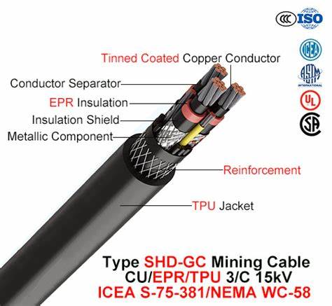 Cáp điện SHD-GC tròn 15kV vỏ TPU ba lõi dây – một giải pháp cáp điện chống cháy nổ nổi bật trong ngành công nghiệp khai khoáng, với khả năng đáp ứng các yêu cầu khắc nghiệt. Thiết kế bền vững, chịu nhiệt và chịu mài mòn cao, kết hợp với điện áp định mức lên tới 15kV, sản phẩm mang lại độ tin cậy và an toàn vượt trội, phù hợp với nhiều ứng dụng đòi hỏi hiệu suất vận hành cao.