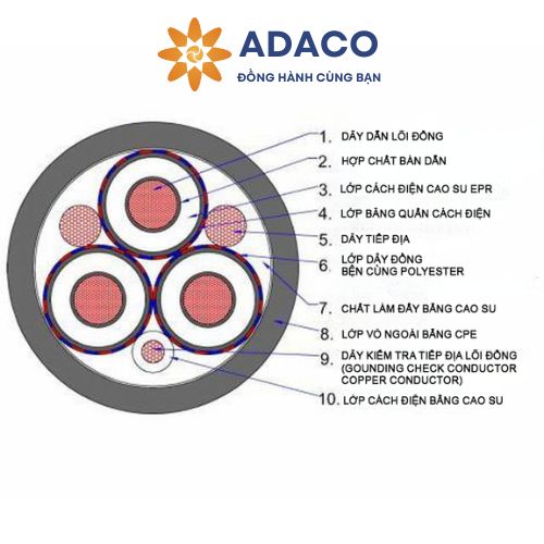 Để cụ thể hơn về cấu tạo, tiêu chuẩn kỹ thuật mà dòng cáp điện cơ động này đáp ứng. ADACO sẽ gửi đến quý vị và các bạn những thông tin cụ thể của dòng cáp điện SHD-GC tròn ba dây lõi vỏ CPE 25kV trong nội dung dưới đây. Quý vị và các bạn hãy cùng theo dõi.