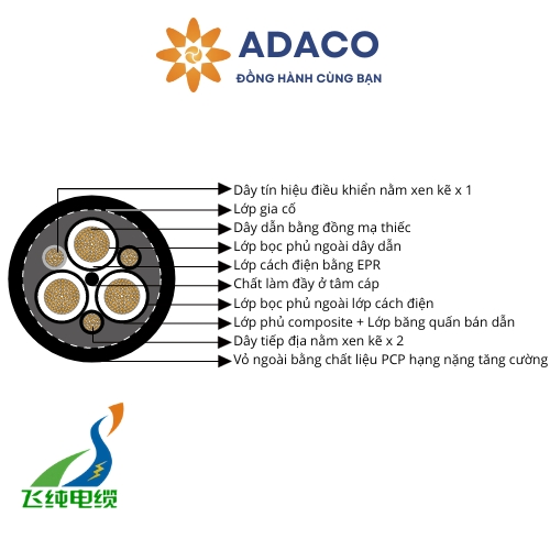 Trong thế giới công nghiệp hiện đại, việc lựa chọn các sản phẩm cáp điện chất lượng cao là điều cần thiết để đảm bảo an toàn và hiệu suất tối ưu. Cáp điện Type 450 chuẩn AS/NZS nổi bật với khả năng đáp ứng nhu cầu đa dạng từ cáp dùng cho máy xúc đến các ứng dụng cuộn cáp với tốc độ chậm. Với thiết kế đa dụng, sản phẩm này không chỉ đảm bảo độ bền và hiệu suất mà còn mang lại sự tiện lợi trong quá trình sử dụng. Hãy cùng ADACO khám phá thành phần cấu tạo, đặc tính và chức năng của cáp điện Type 450 do Feichun sản xuất theo tiêu chuẩn AS/NZS..