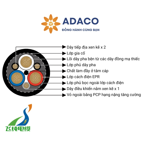 | Vỏ ngoài | Vỏ bọc bằng PCP hạng nặng tăng cường. (Lớp bọc CPE hoặc CSP hạng nặng tăng cường cũng có thể được thiết kế thay thế theo yêu cầu). |