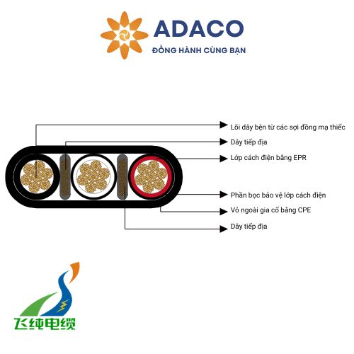 3. Đặt mua, thiết kế cáp điện vỏ dẹt loại SHD ba dây dẫn 2kV giá tốt – liên hệ ADACO