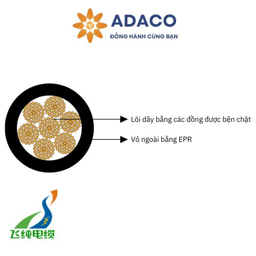 Cấu tạo vỏ/lớp cách điện: vỏ ngoài của cáp được làm bằng EPR.