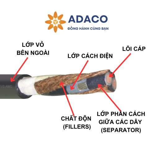 Lớp tách biệt giữa các dây (Separator): lớp phân tách dây này giúp dễ dàng tước bỏ lớp cách nhiệt khi cần thiết trong quá trình bảo dưỡng, thay thế.