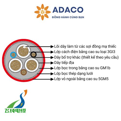Với hơn 20 năm kinh nghiệm trong lĩnh vực sản xuất cáp điện chuyên dụng cho các lĩnh vực công nghiệp, công ty cáp điện đặc biệt Anhui Feichun – Trung Quốc đã sản xuất sản phẩm cáp nối điện trung thế (N)TSCGECWOEU (tên tiếng Anh là (N)TSCGECWOEU Medium Voltage Trailing Cable) dựa theo thiết kế theo tiêu chuẩn VDE của Đức và các tiêu chuẩn khác của thị trường châu Âu. Sản phẩm hiện được Feichun ủy quyền phân phối chính thức tại Việt Nam bởi nhà cung cấp ADACO, cáp điện này đang trở thành lựa chọn hàng đầu của các công ty, đơn vị khai thác khoáng sản trên thế giới.